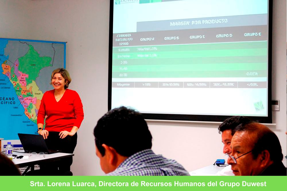 Contamos con la presencia de la Srta. Lorena Luarca, Directora de Recursos Humanos del Grupo Duwest, quien motivó a nuestros representantes comerciales de cada zona en el logro de los objetivos propuestos para este año, sin olvidar sus objetivos personales y familiares.
